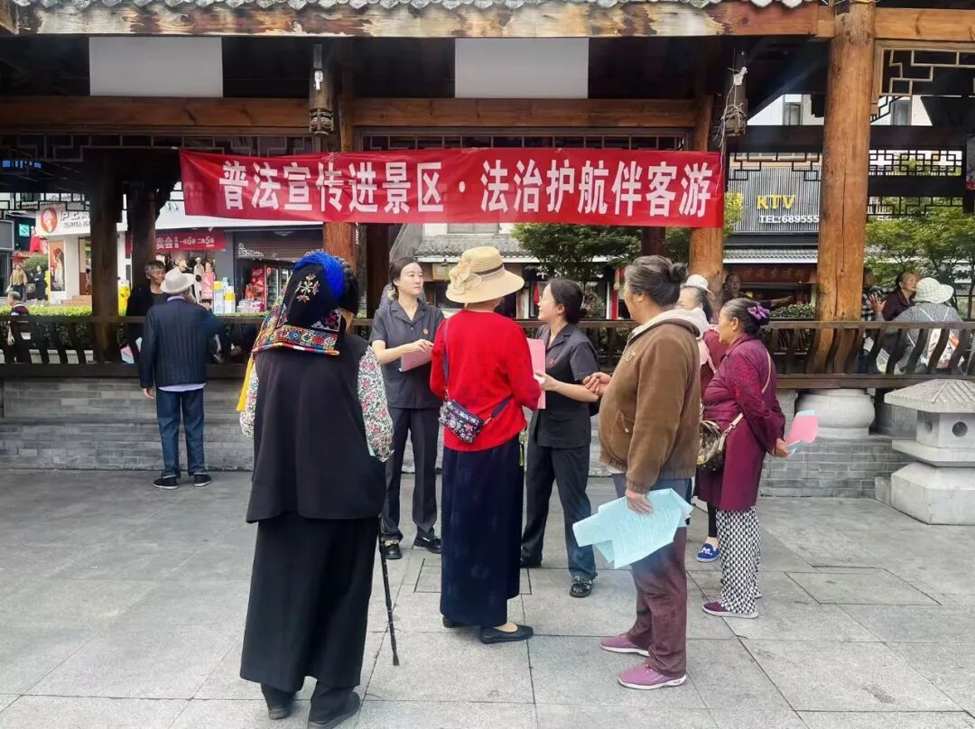 为深入贯彻落实州委、州政府关于“文旅兴州”的战略部署,充分发挥司法职能作用,为全州旅游业高质量发展提供坚实的法治保障,在五一国际劳动节期间,泸定县人民法院积极作为,安排值班干警前往城区三处法官工作站挂牌点,与文旅、市场监管、公安等部门加强沟通协作,为来往游客提供法律服务。