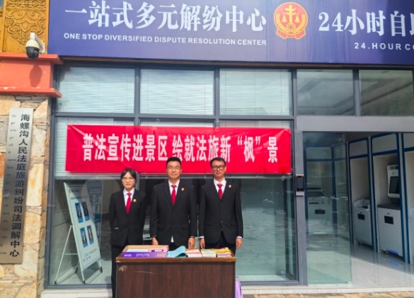 为保障2025年国庆、中秋“双节”期间景区旅游秩序和谐稳定,提升游客与群众法治意识,营造安全、文明、绿色的假日旅游环境,10月1-2日,泸定法院海螺沟法庭在海螺沟景区核心区域开展涉旅纠纷化解、环境保护普法宣传活动,为游客及商户提供“零距离”法律服务。