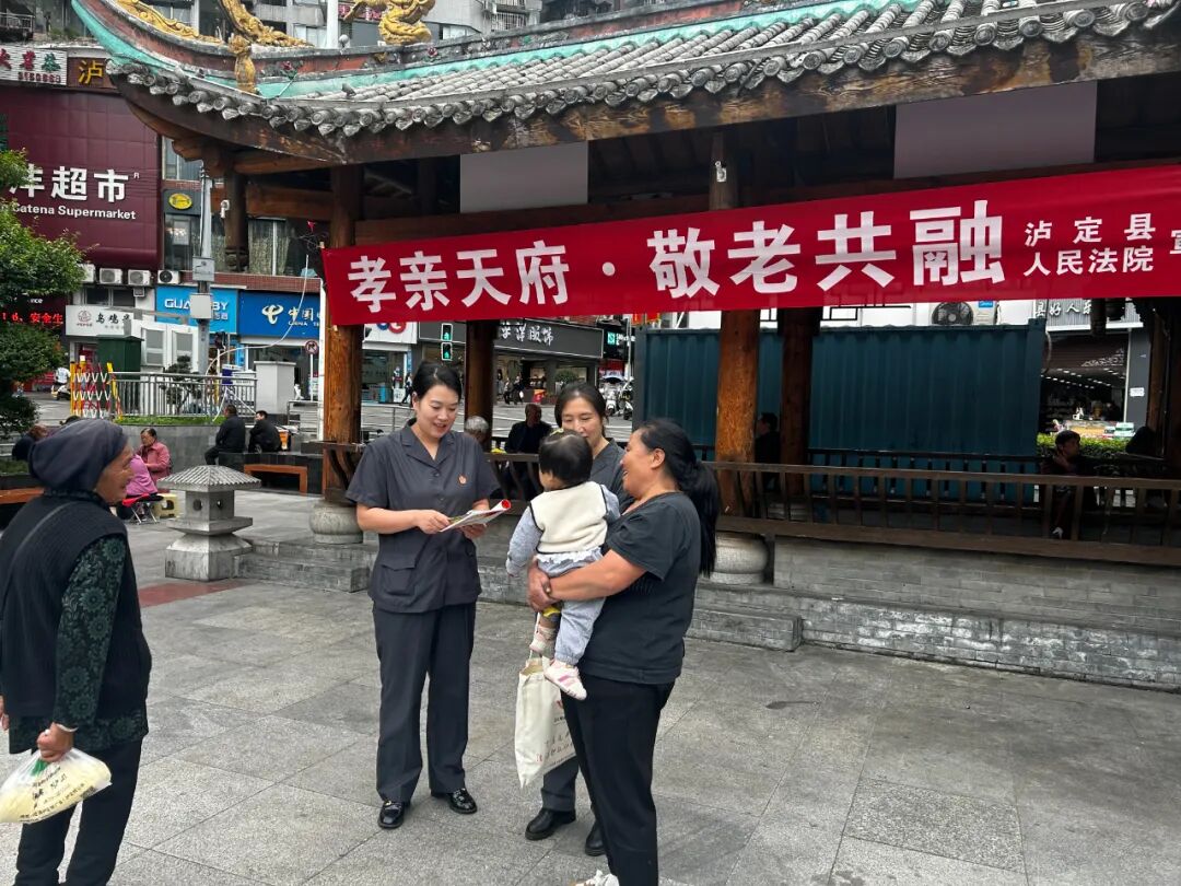 正值全国第十六个 “敬老月” ,为切实提升老年人依法维权意识与能力,10月20日,泸定法院干警走进泸定桥广场,开展“孝亲天府·敬老共融”主题慰问普法活动,聚焦老年人权益保障急难愁盼问题,以法治力量守护 “银发幸福”。