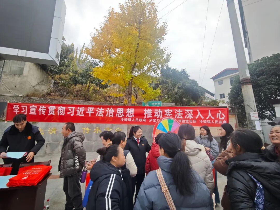 12月4日,在第十二个国家宪法日来临之际,泸定县人民法院冷碛人民法庭受冷碛镇人民政府邀请,联合县司法局、镇派出所走进银杏广场,开展“学习贯彻习近平法治思想,推动宪法深入人心”国家宪法日法治宣传系列活动,将法律知识送到群众身边。