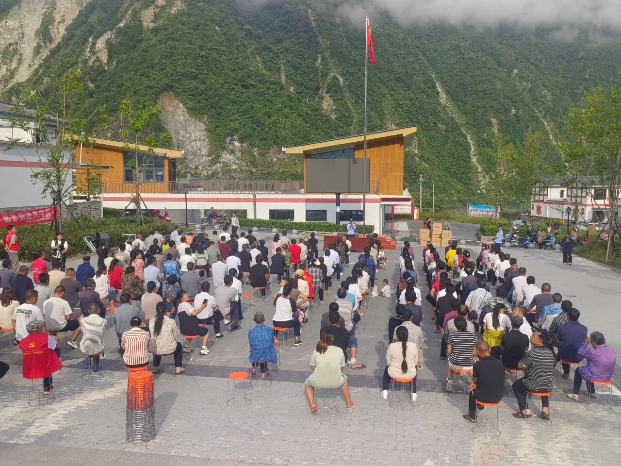 为进一步深化基层治理,提升辖区群众的反诈、守法意识,筑牢乡村振兴的安全基石。2025年9月5日,“9.5”泸定地震三周年之际,在灾后重建集中安置点开展的以“感恩奋进”为主题的群众大会上,泸定县公安局得妥派出所本着工作靠前、重心前移的为民服务宗旨,为群众扎实开展了法治宣讲。